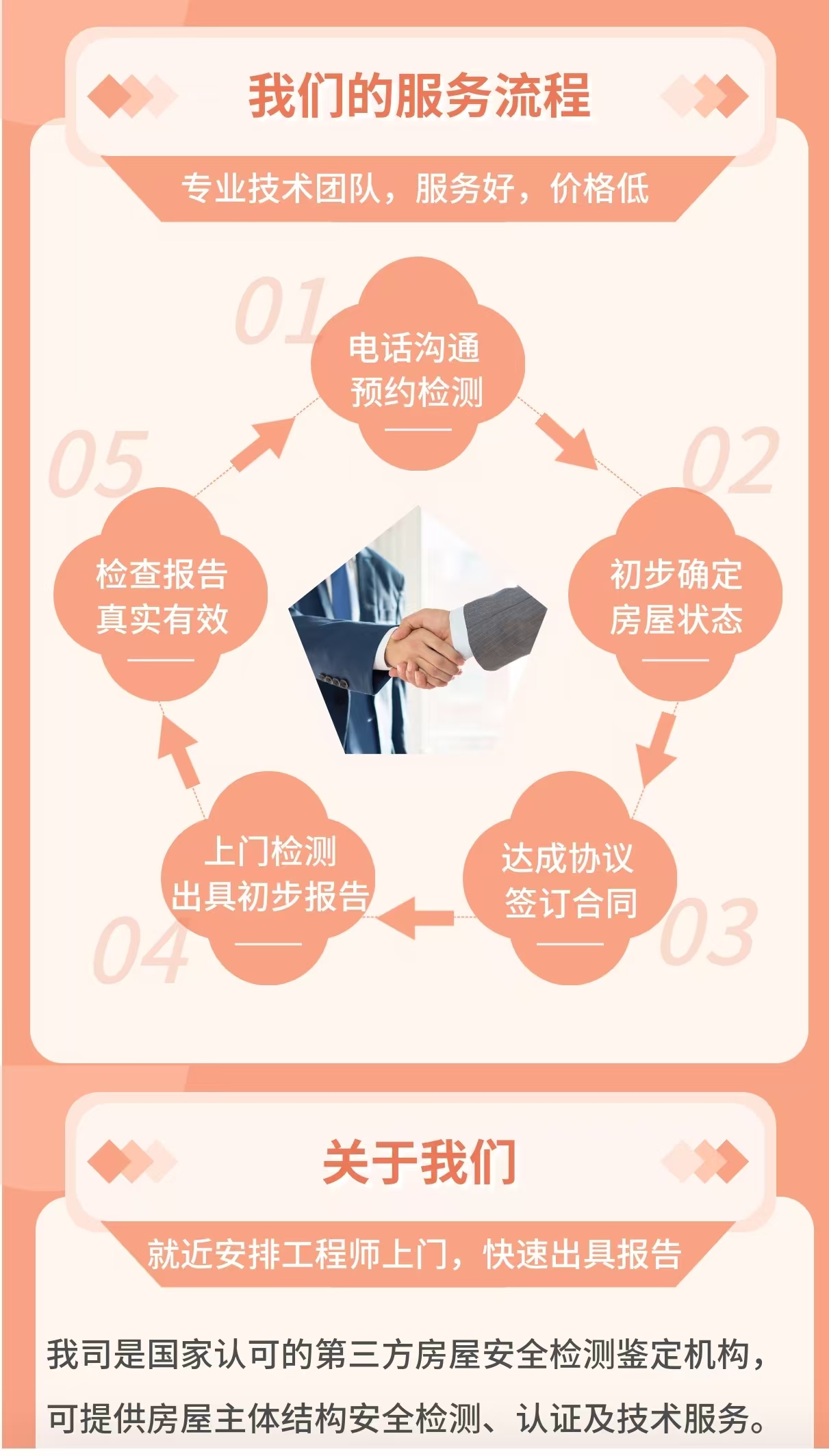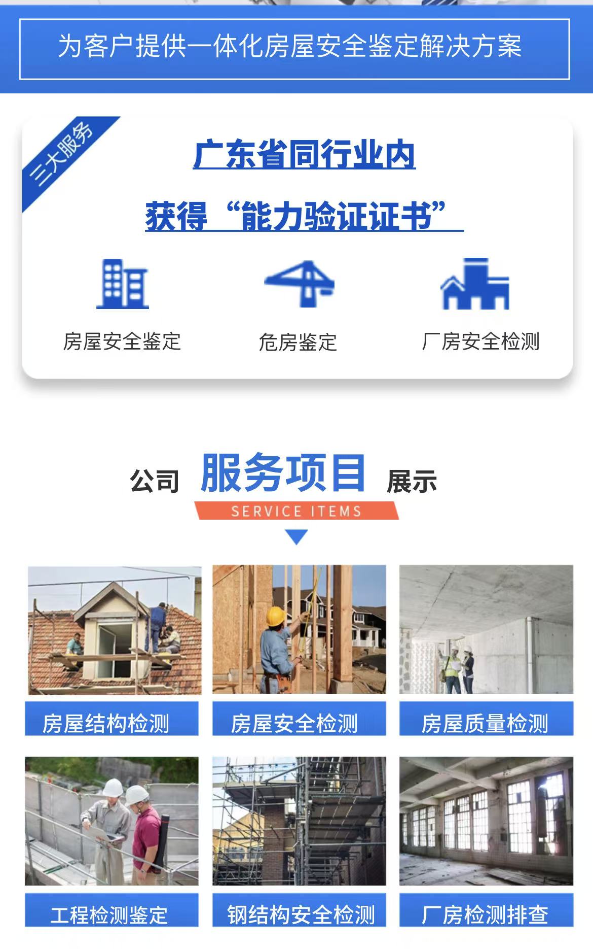 特点:背景,权威性强,覆盖各类房屋安全检测。
